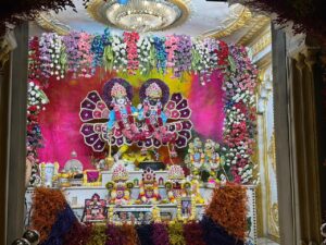 अक्षर धाम जगतपुरा। हाइड्रोलिक कमल पुष्प पर विराजे कृष्ण बलराम, गौर पूर्णिमा पर हुआ महा अभिषेक