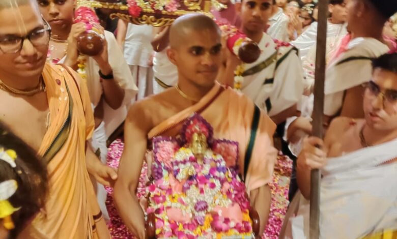 हाइड्रोलिक कमल पुष्प पर विराजे कृष्ण बलराम, गौर पूर्णिमा पर हुआ महा अभिषेक
